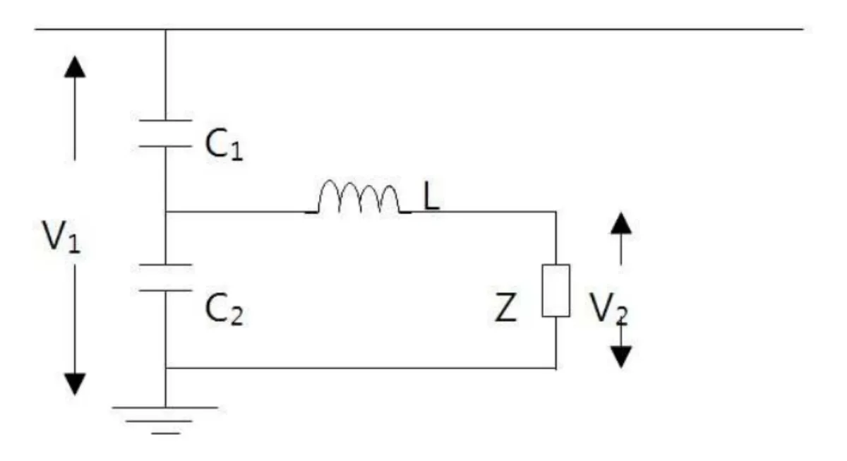 $\frac{V_{1}}{V_{2}} = \frac{C_{1} + C_{2}}{C_{1}}$가 되어 $Z$의 값에는 무관하게 됩니다.